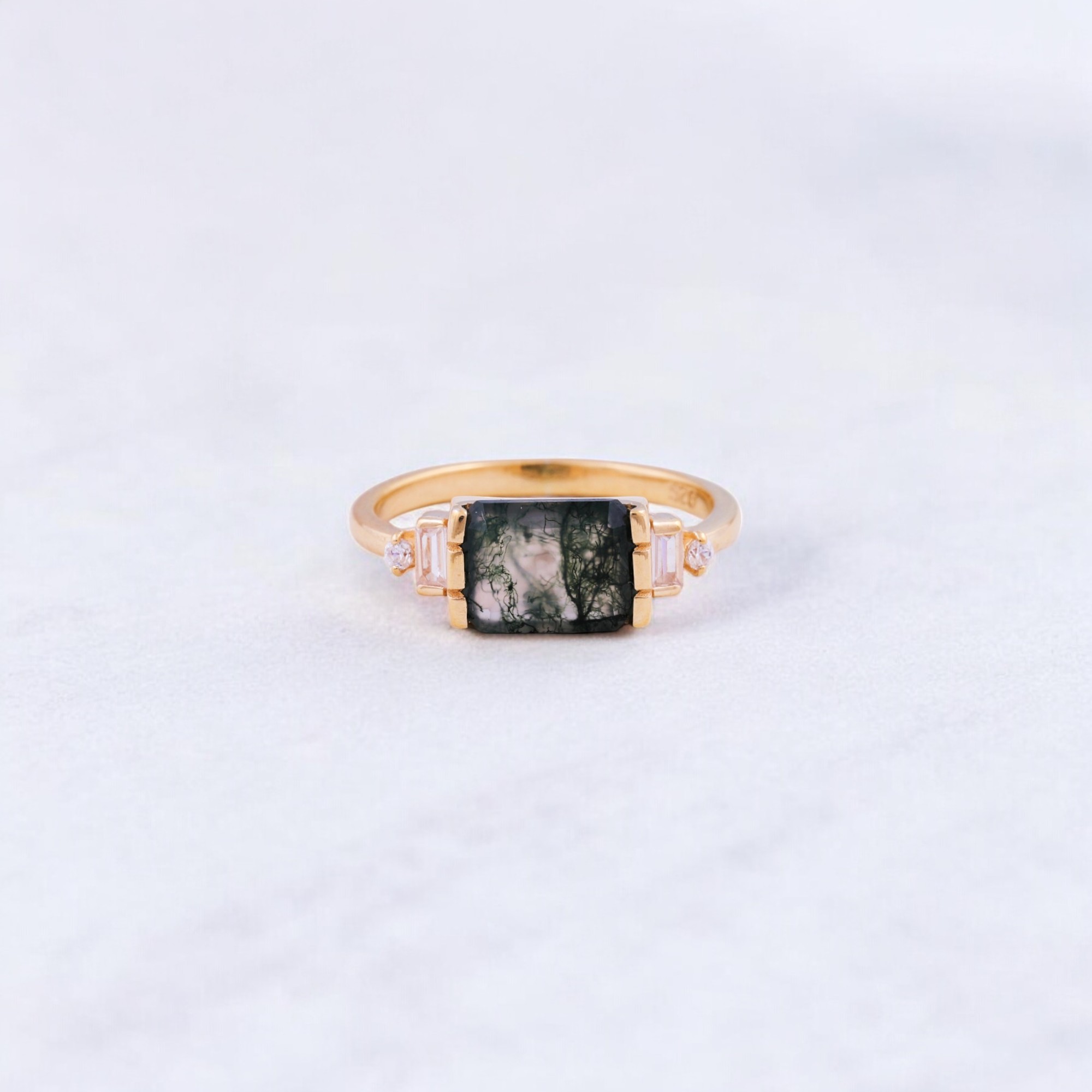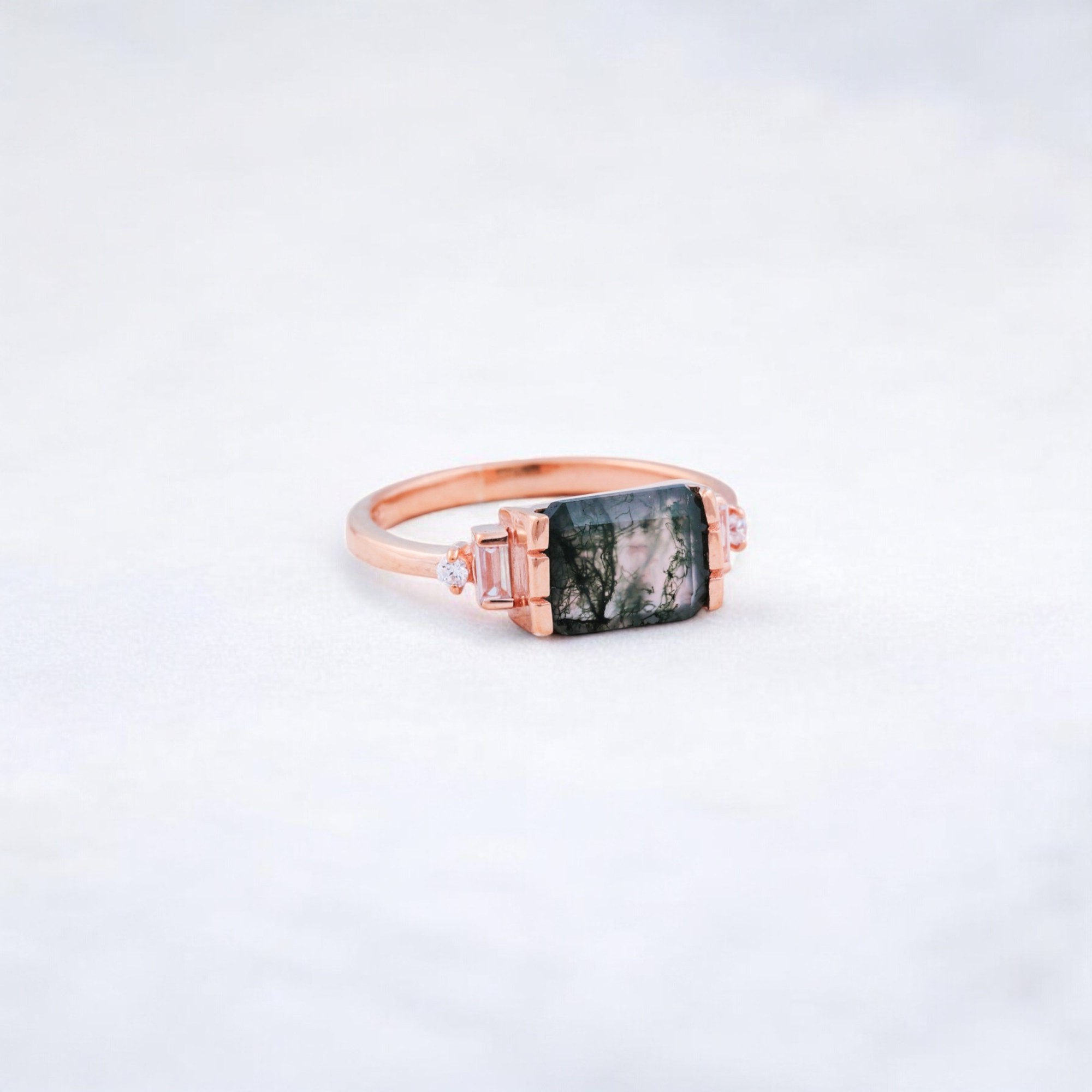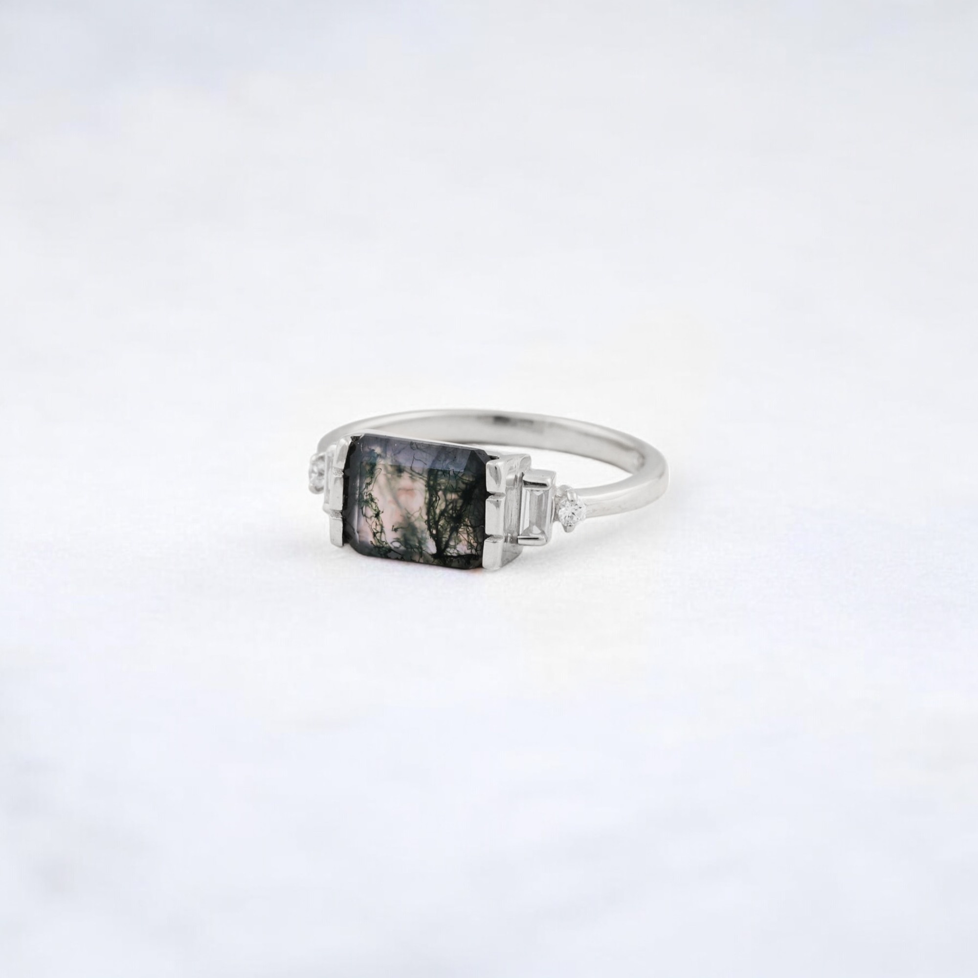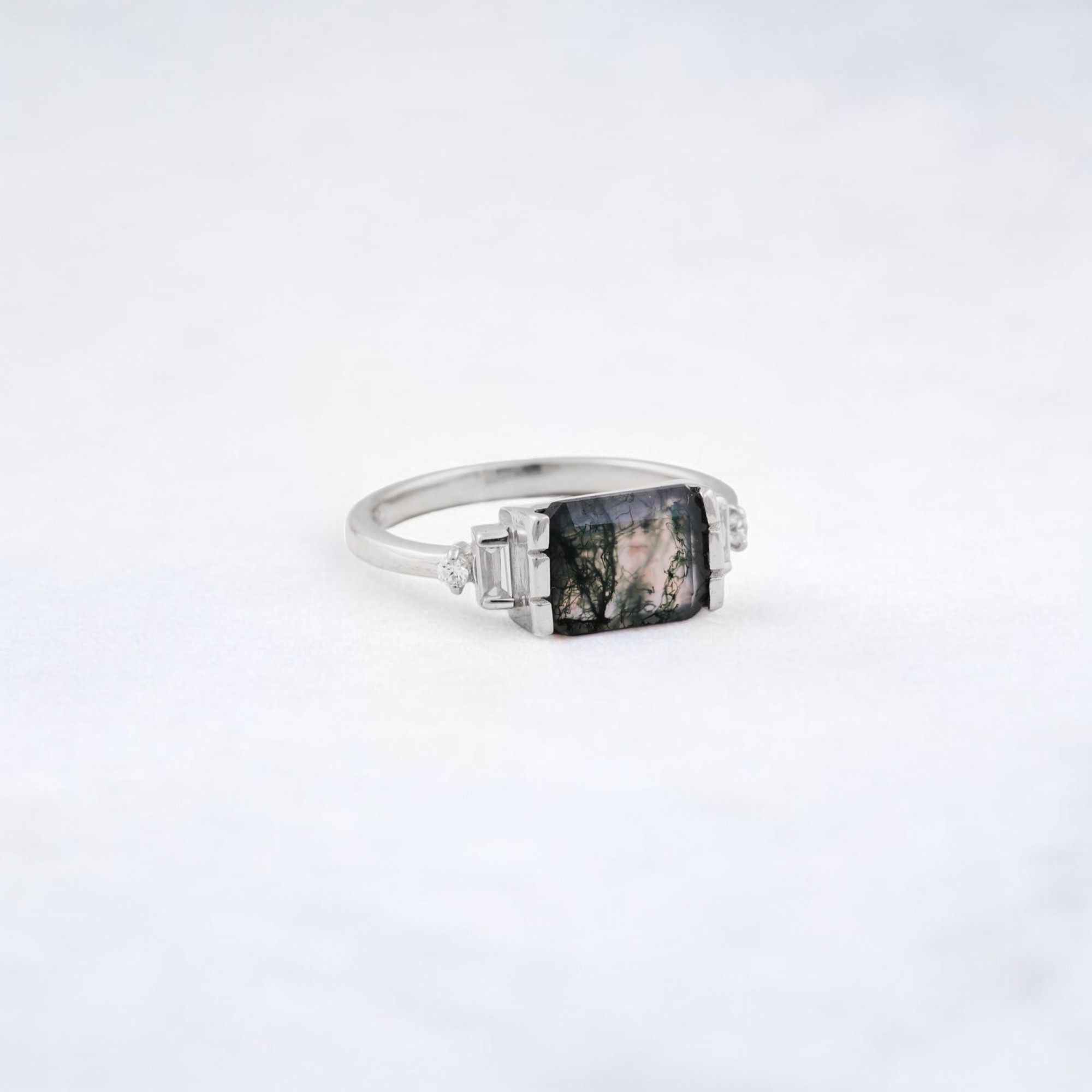 Be the first to review “2 CT Emerald Cut Natural Moss Agate Cluster Ring”