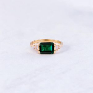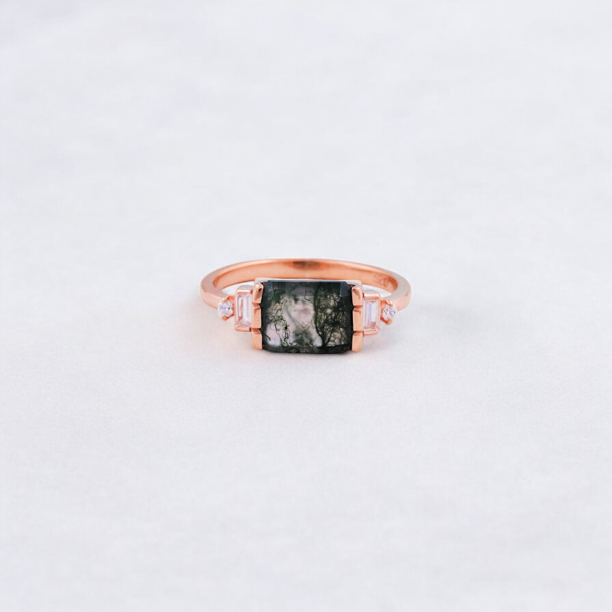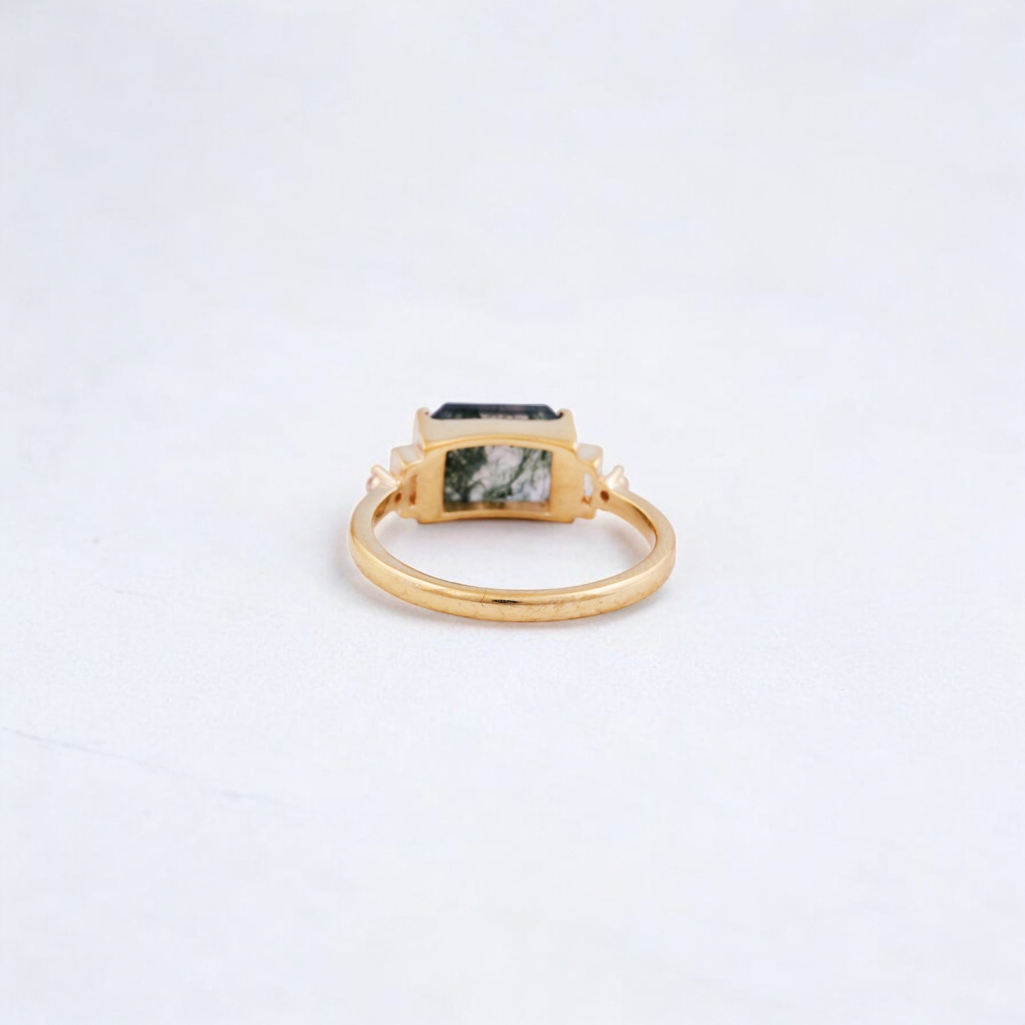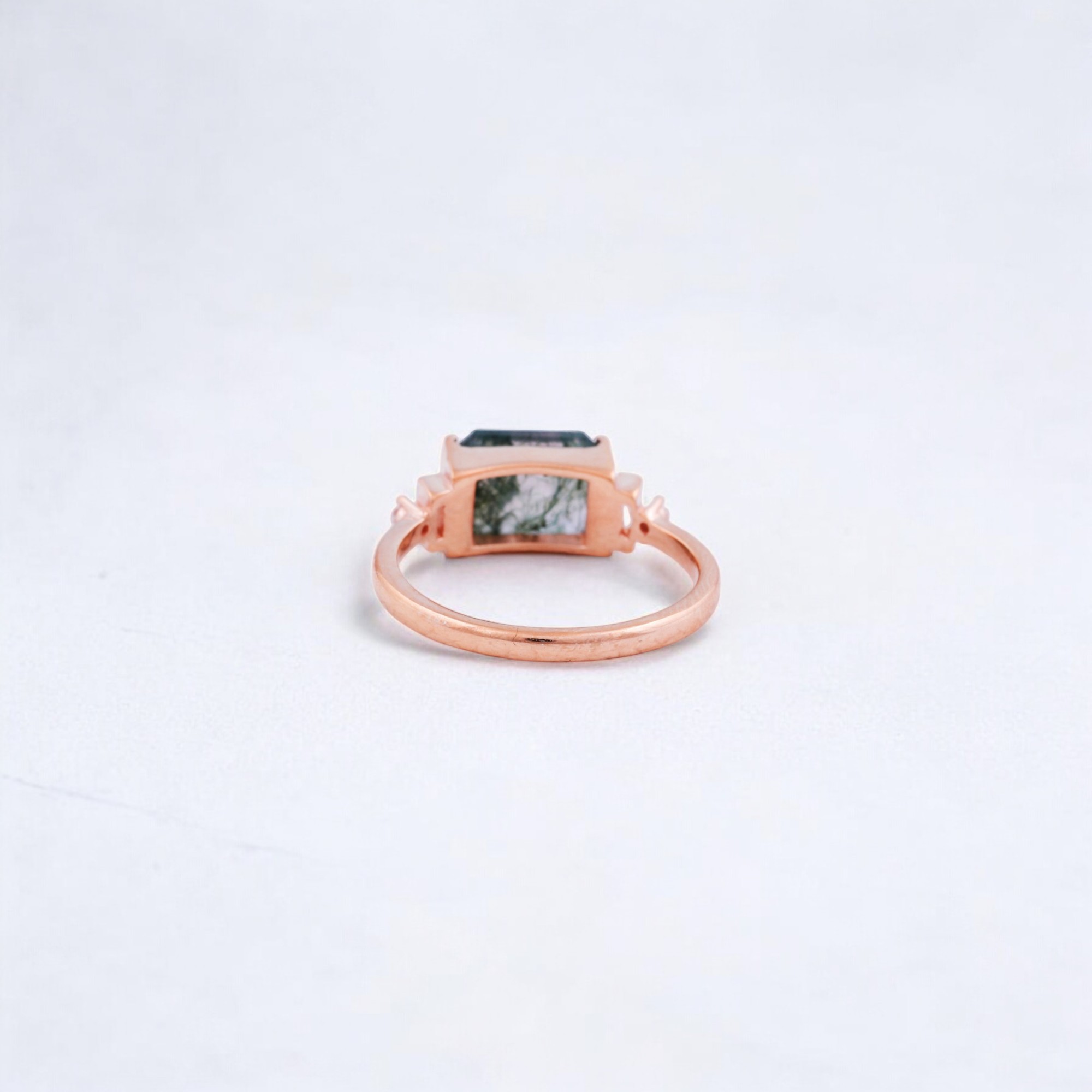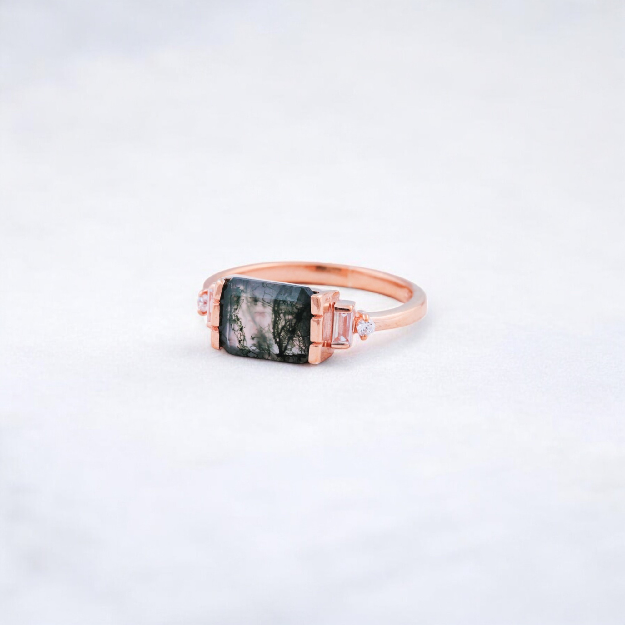 Be the first to review “2 CT Emerald Cut Natural Moss Agate Cluster Ring”