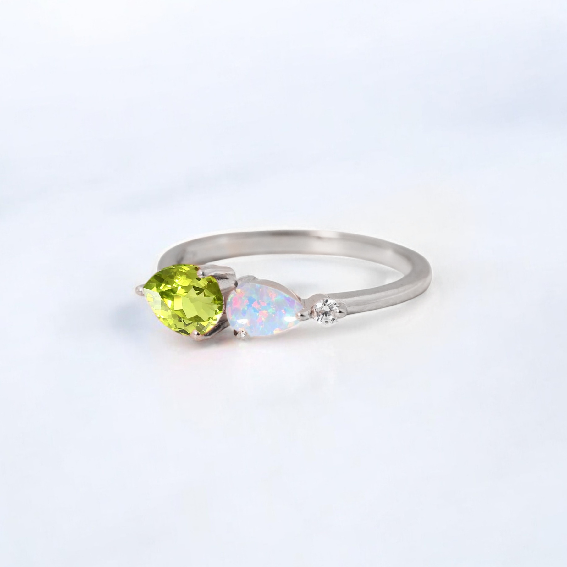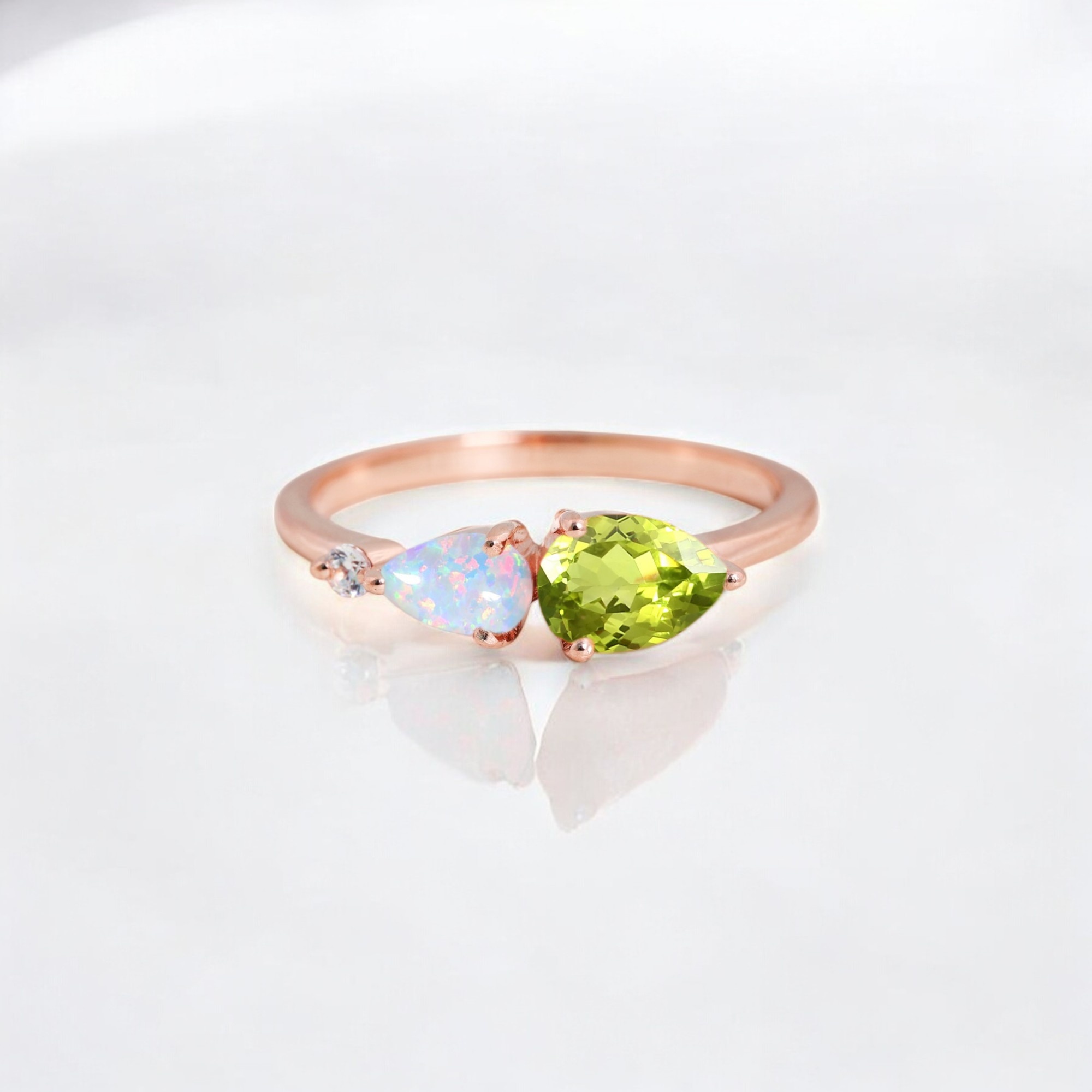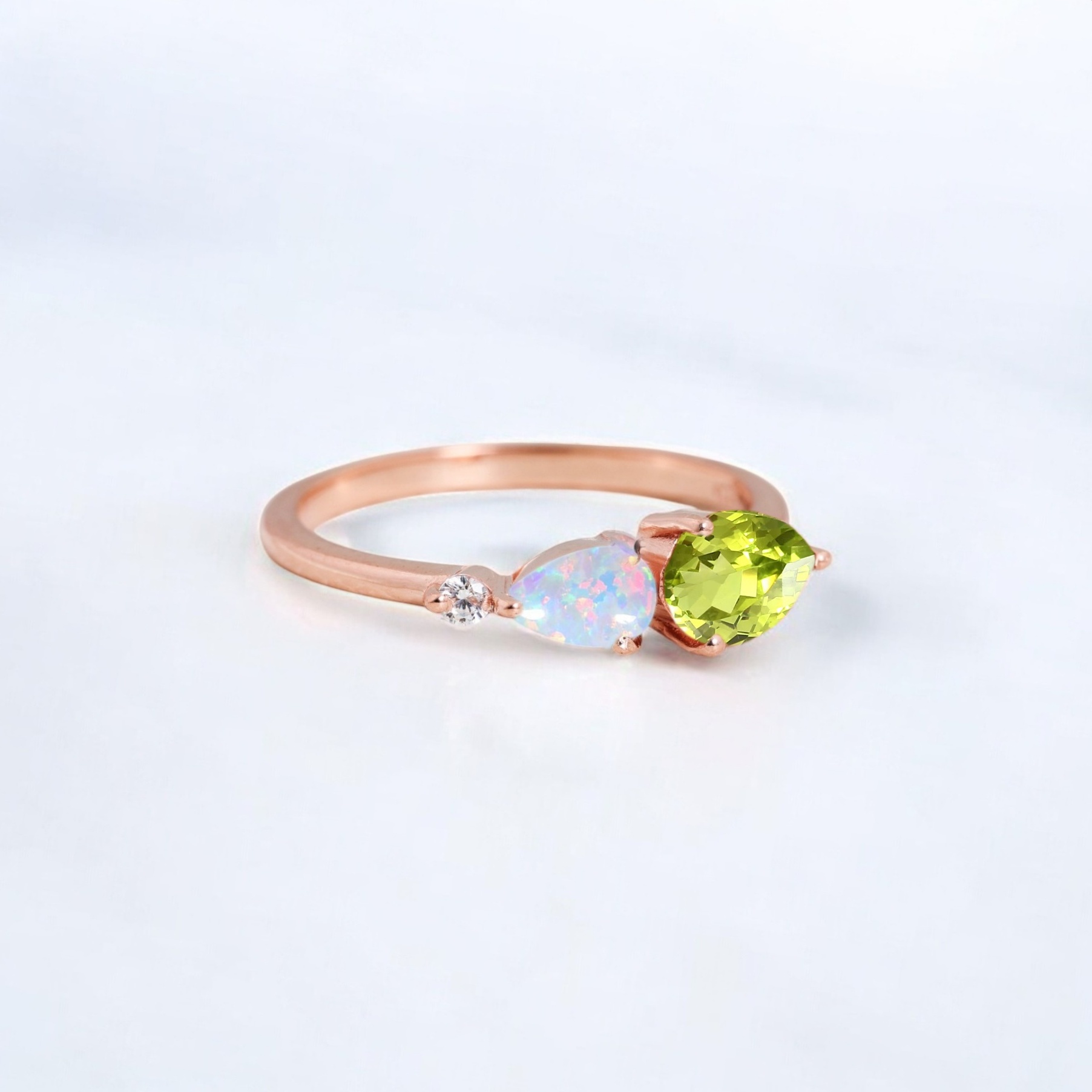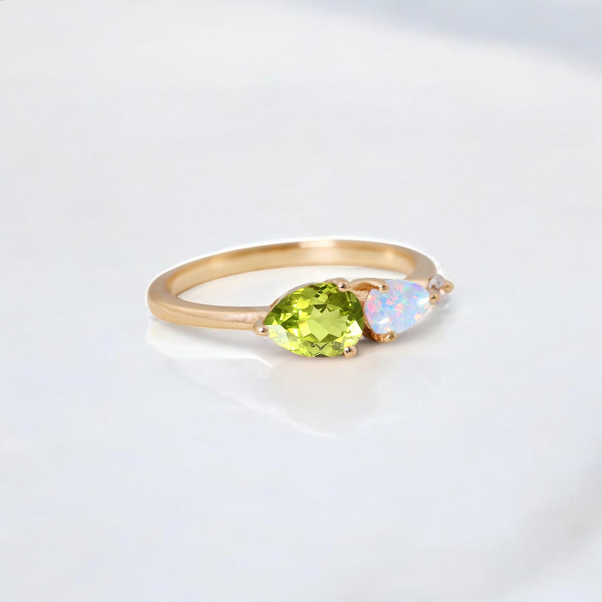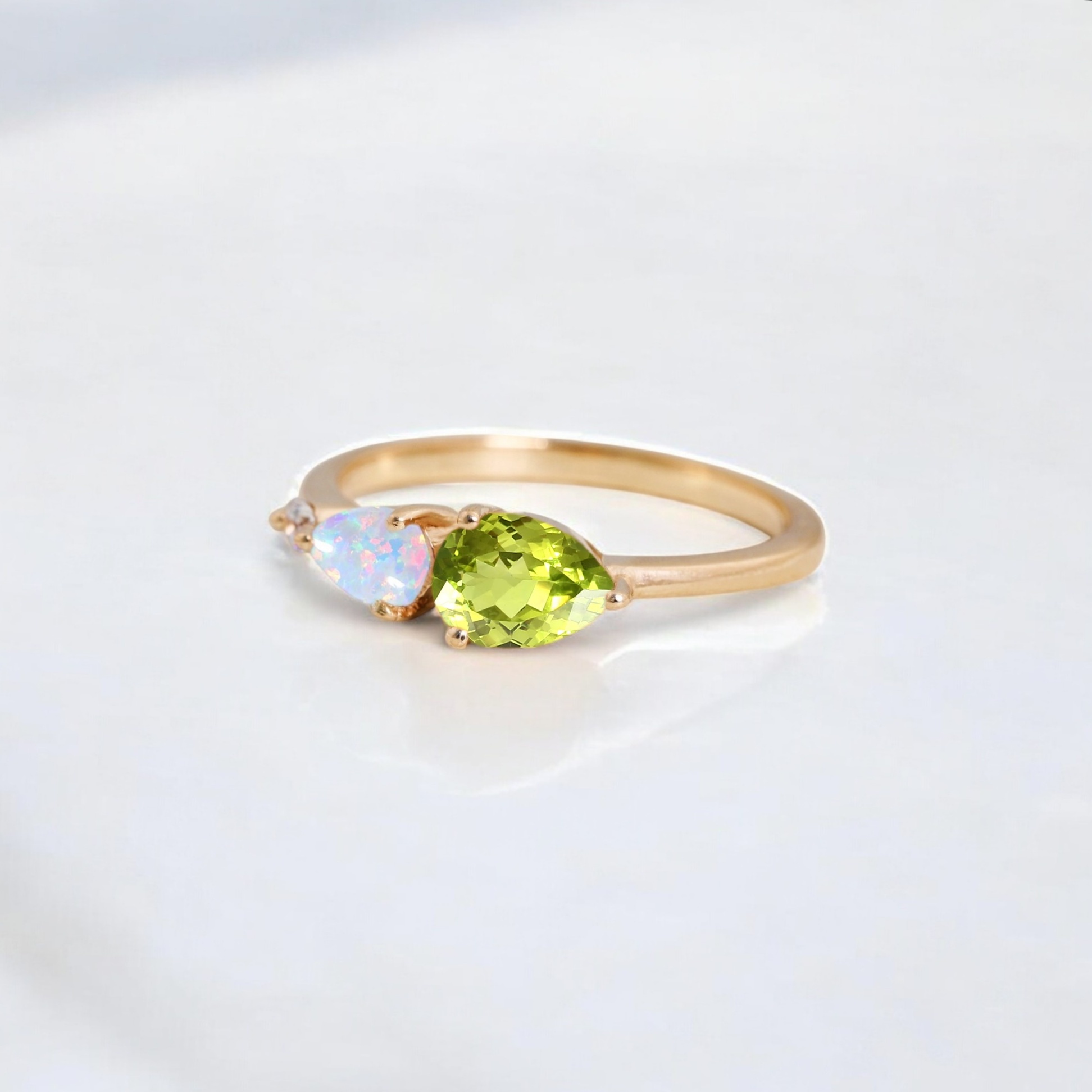 7x5MM Pear Cut Peridot Opal Ring