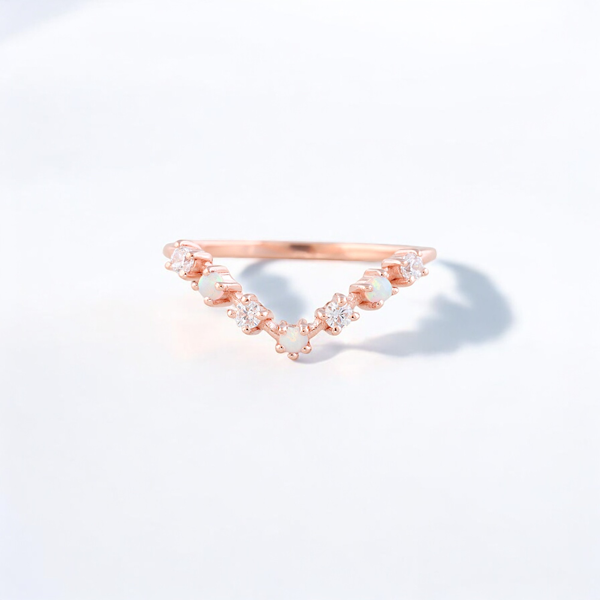 Diamonds or White Sapphires: Small round brilliant-cut stones, accenting between opals