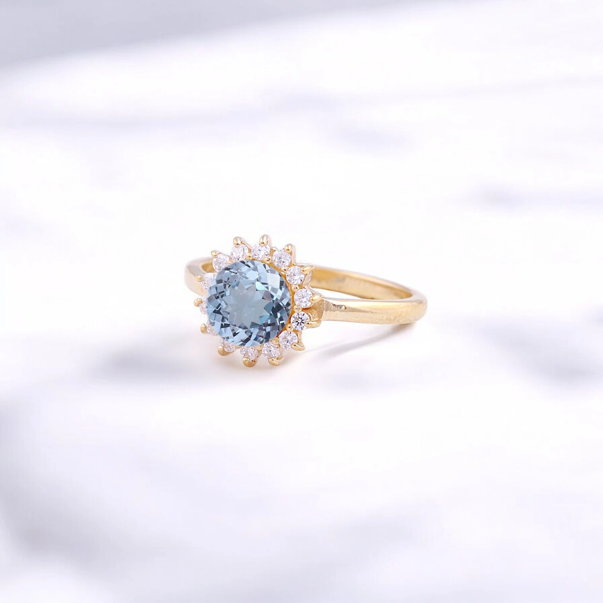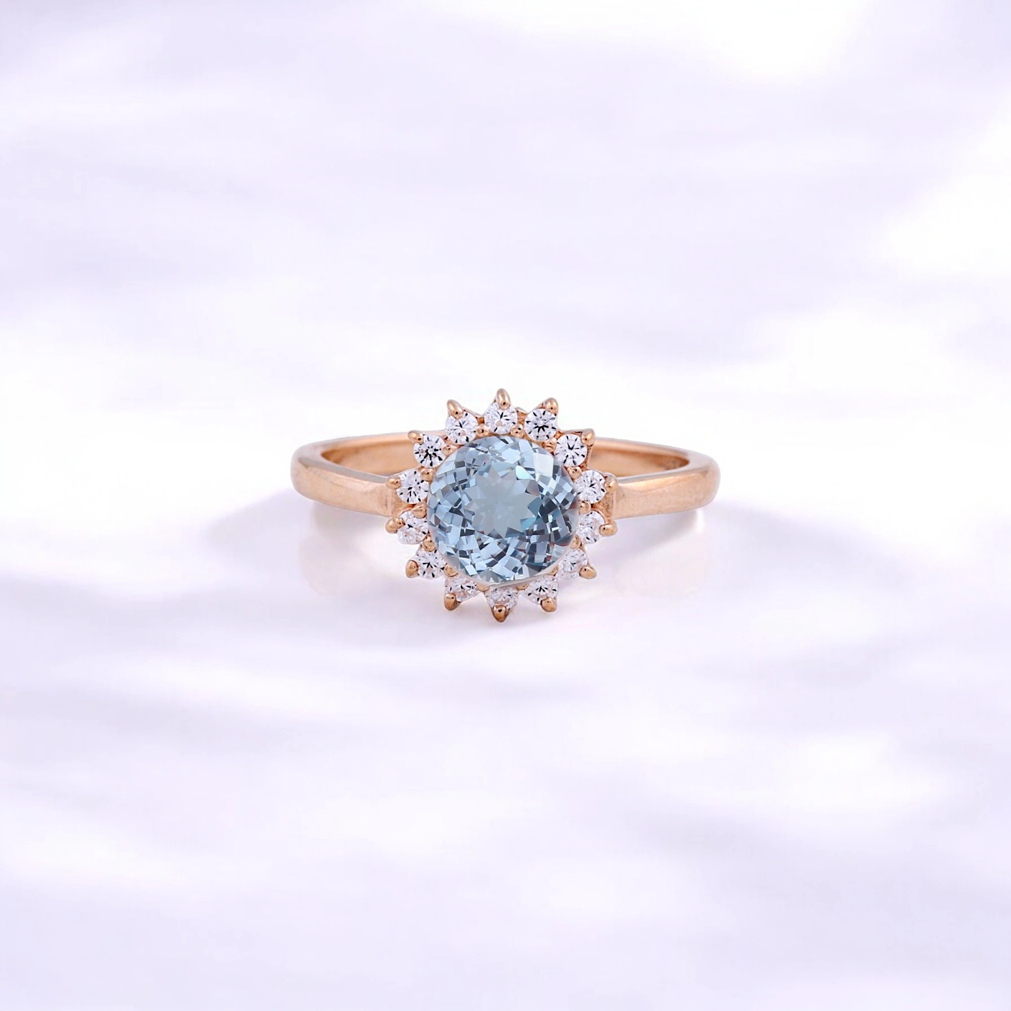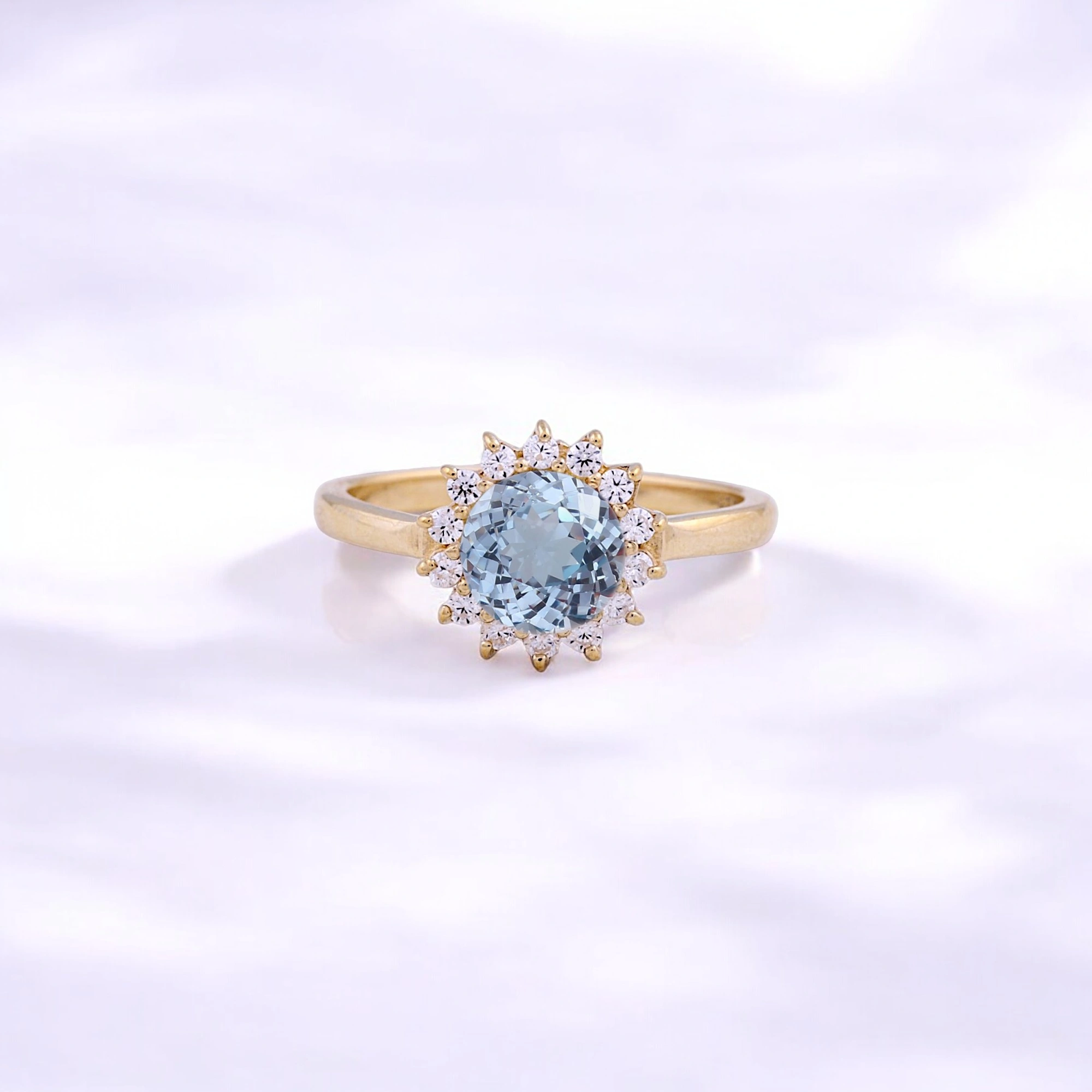 Exquisite Aquamarine Diamond Halo Ring – Timeless Elegance & March Birthstone Jewelry